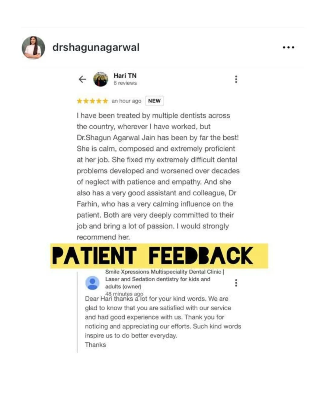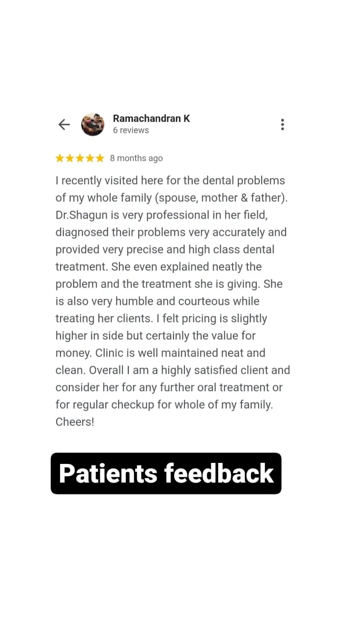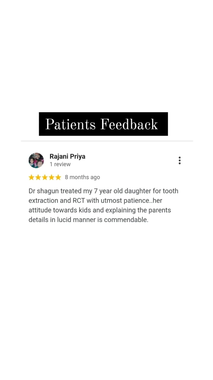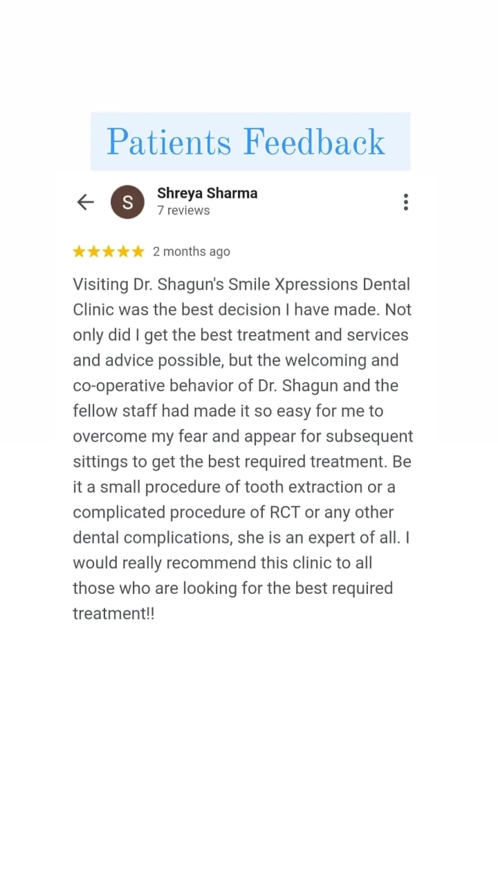 - Dr. Shagun Agrawal, our chief dentist, is highly qualified & experienced. She was “Gold Medalist” in both BDS & MDS