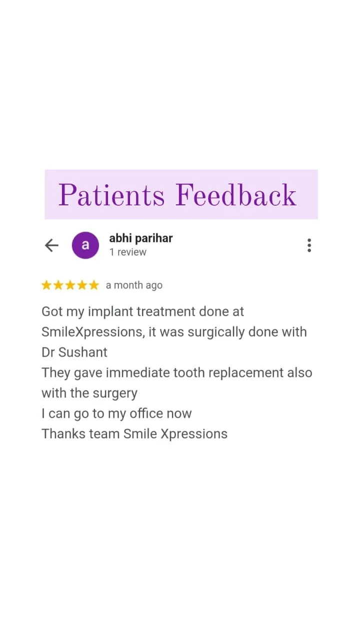 • Implant surgery at smilexpression is done by our Oral Surgeon Dr. Sushant Math followed by prosthetic rehabilitation with a full ceramic crown.